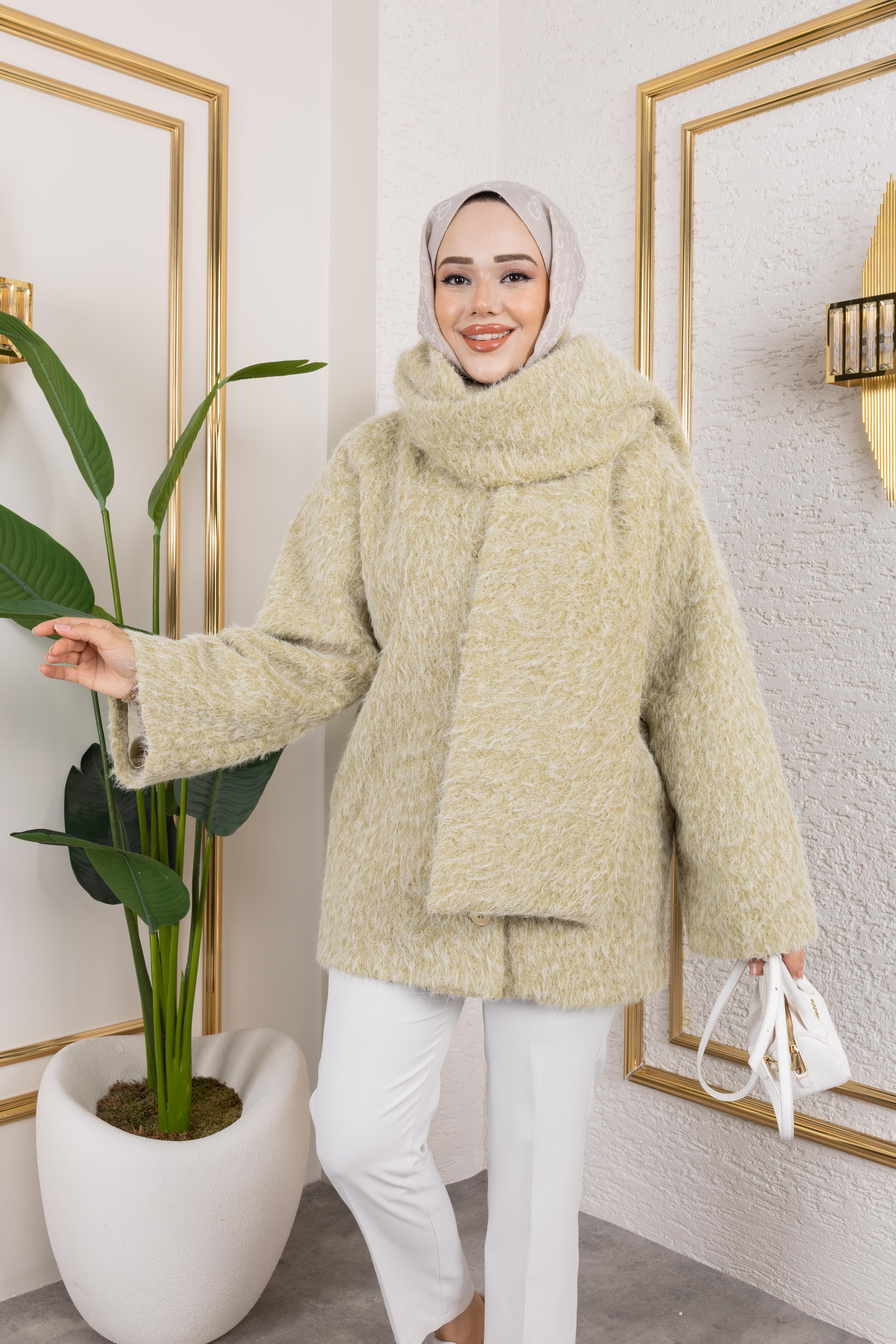 Mint Yeşili Atkılı Kaban