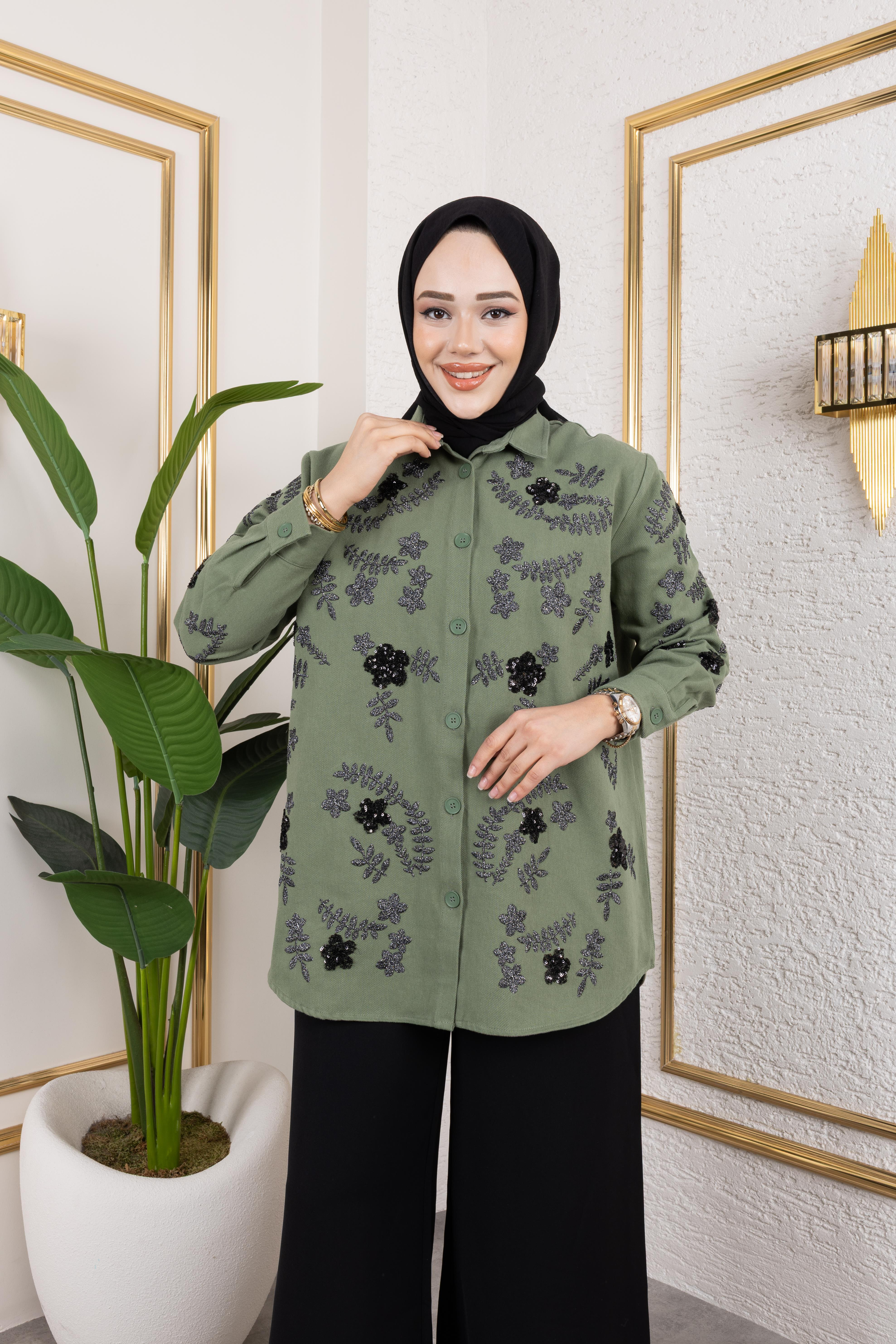 Payetli Yeşil Gömlek
