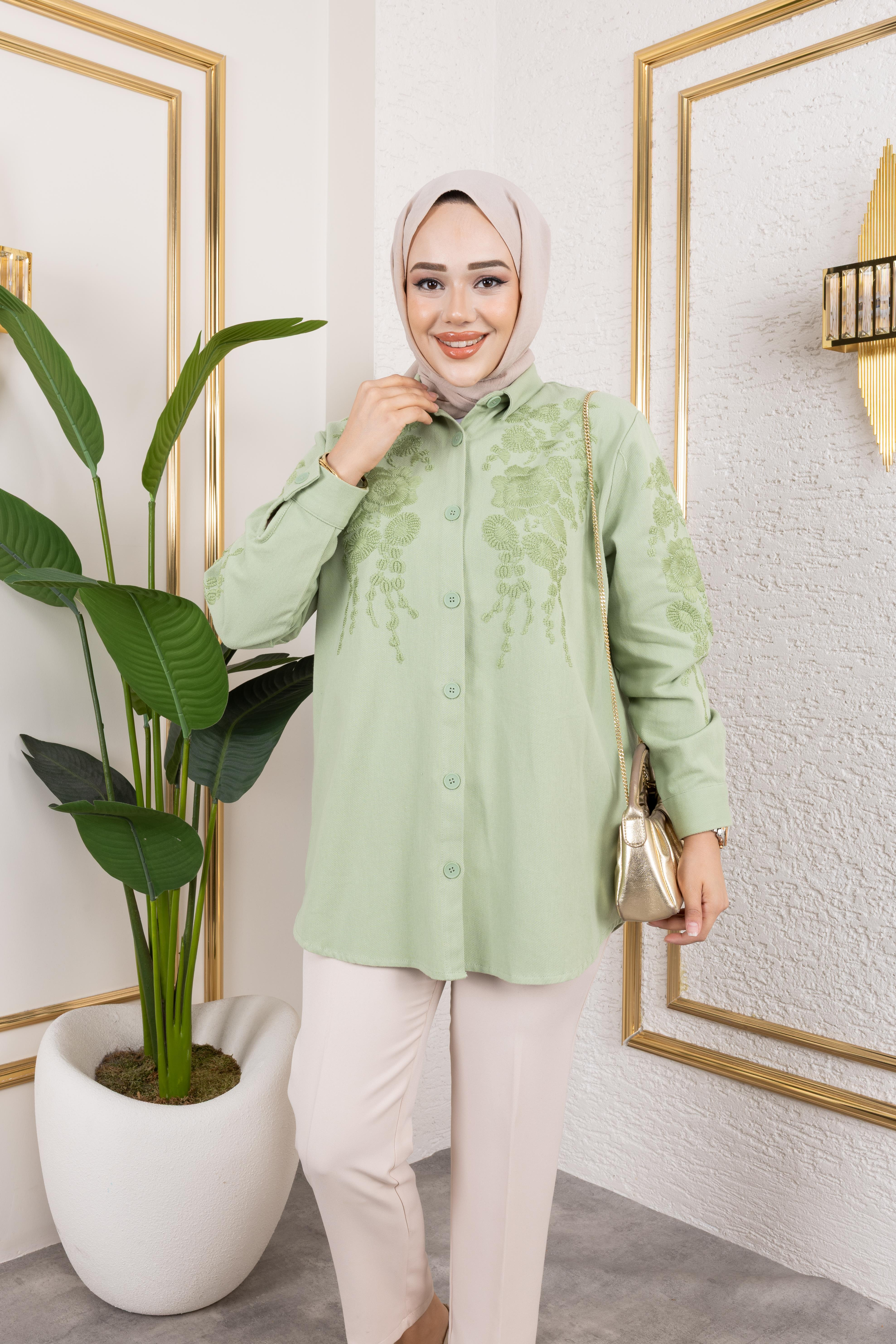 Su Yeşili Nakışlı Gömlek